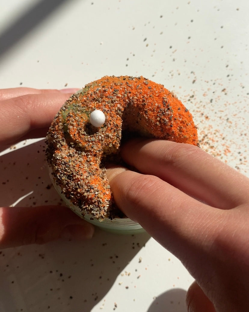 addins: sand to represent the weird terrain around the golf course, ‘golf ball’ floam + flower fimos