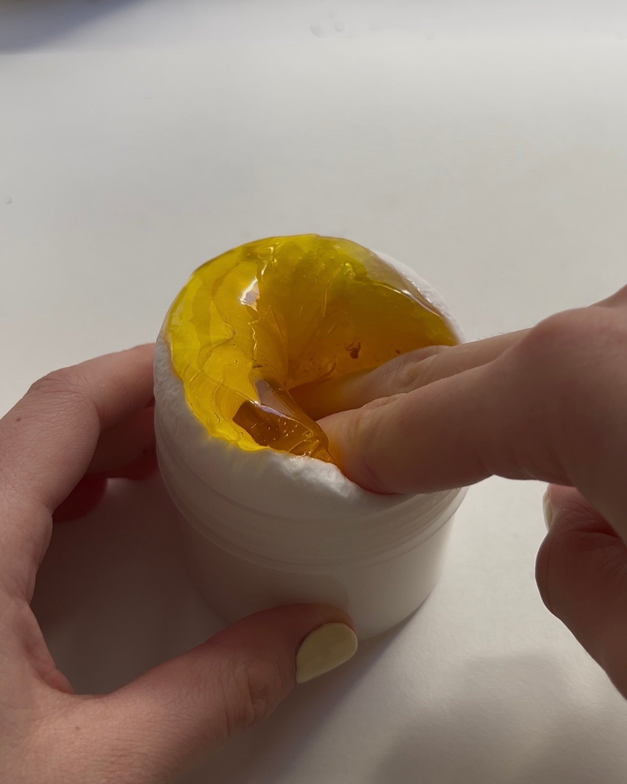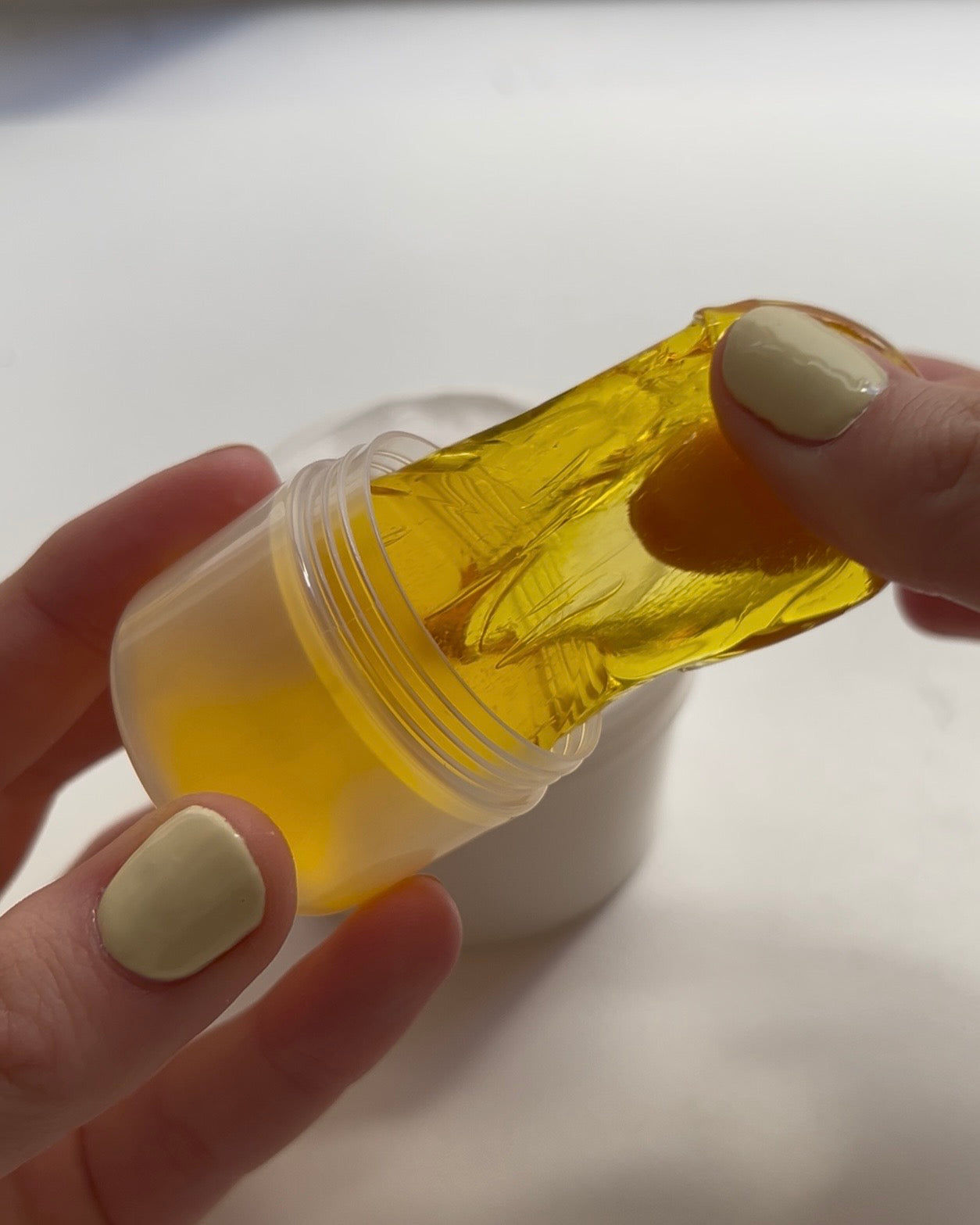 texture: butter x clear topper (mixes into a slightly more sizzly butter slime 😋)