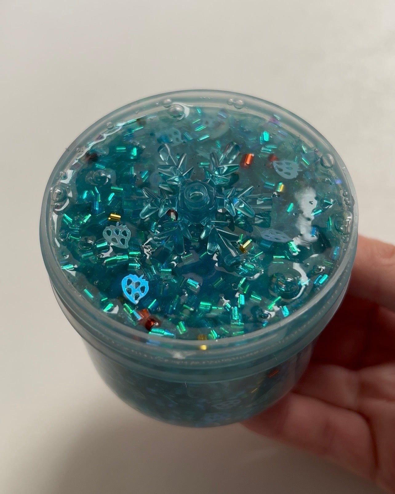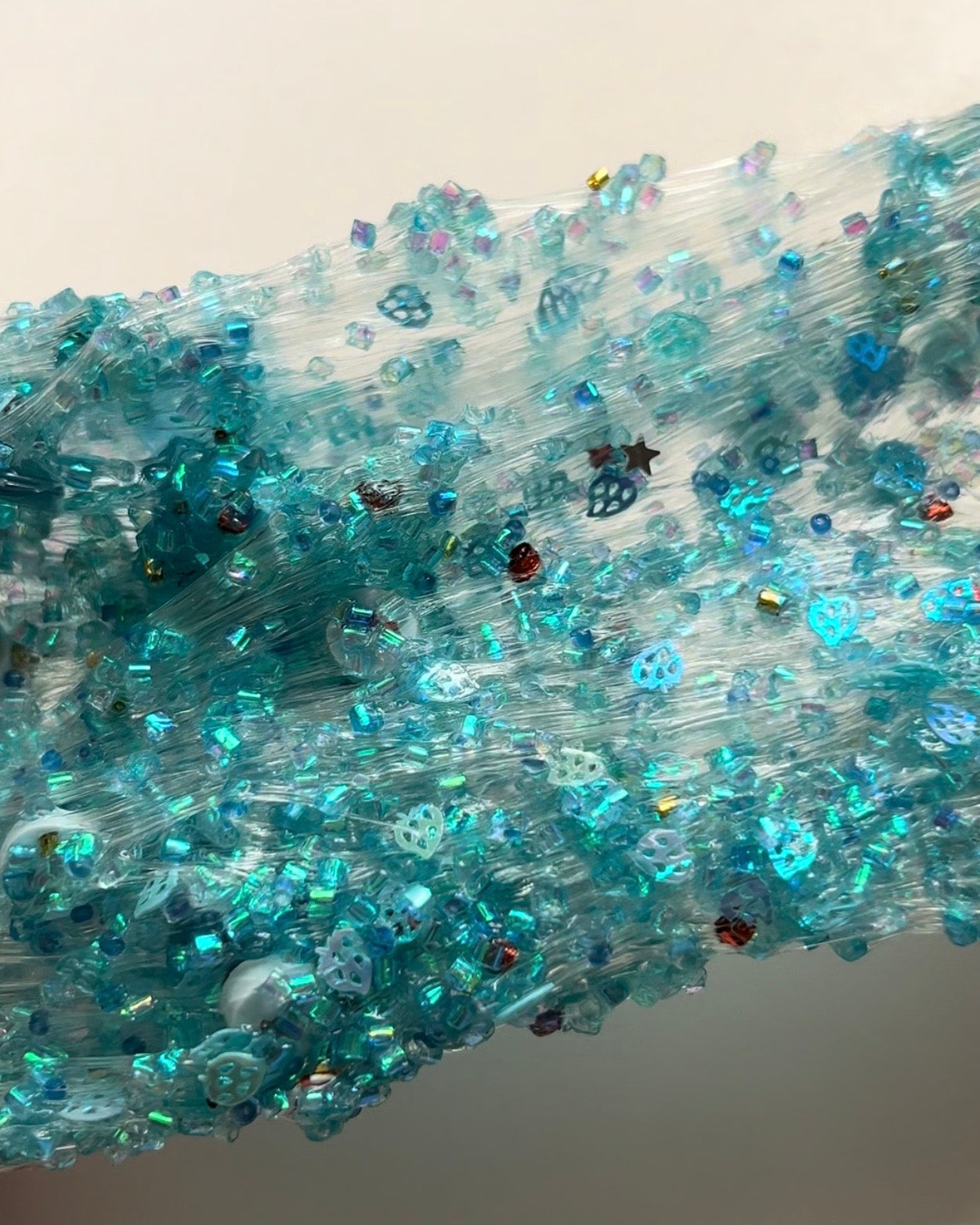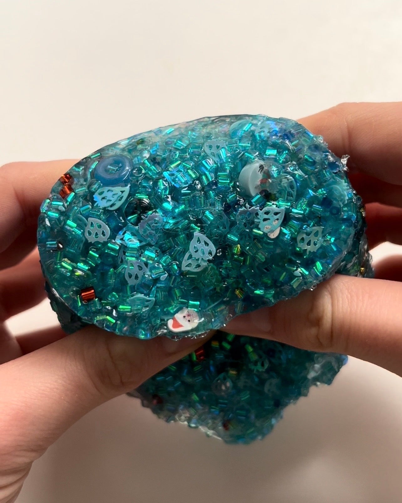 texture: coated clear crunch bomb packed with bingsu, sequins, beads, glitters, fimos