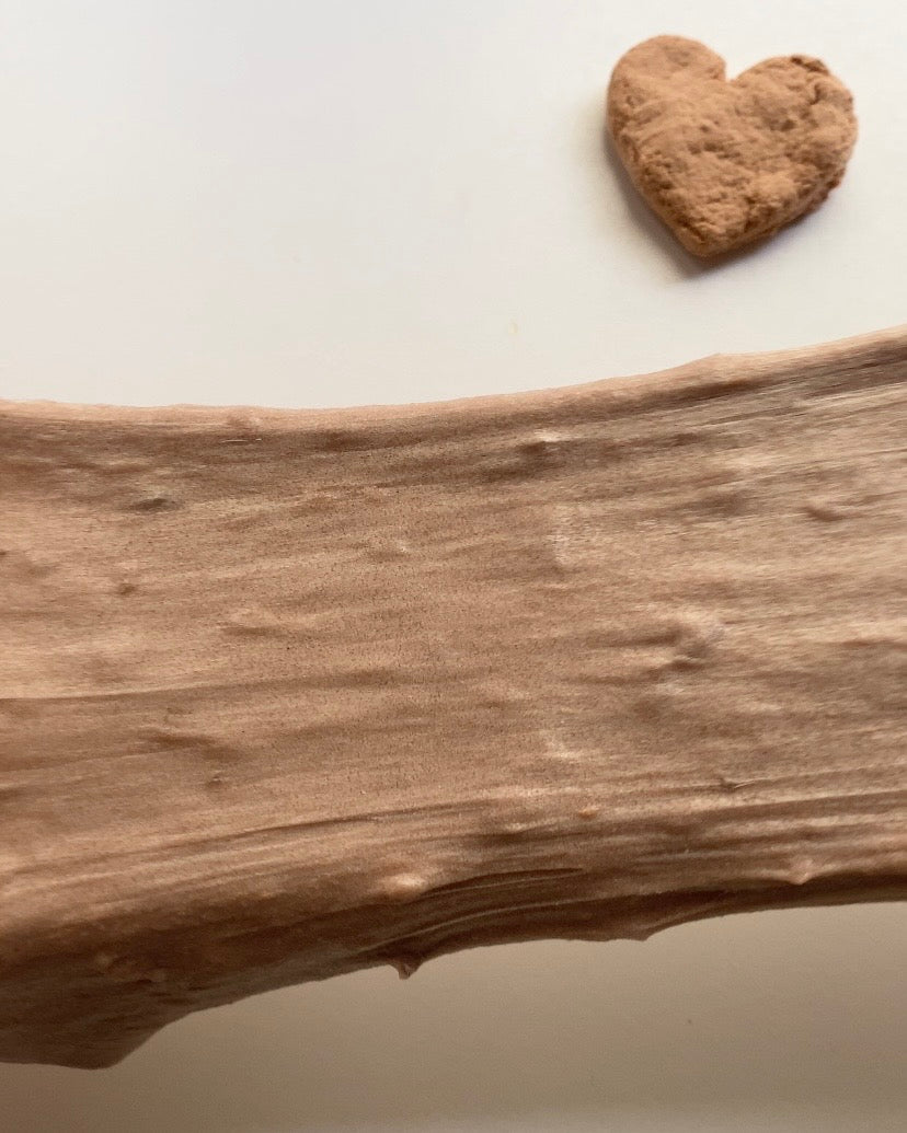 wood clay is naturally quite tricky to mix - so do have some activator and glycerine on hand - but the resulting texture is so good - a chewy wood slay with a bit of texture from the snow fuzz chunks 🫶