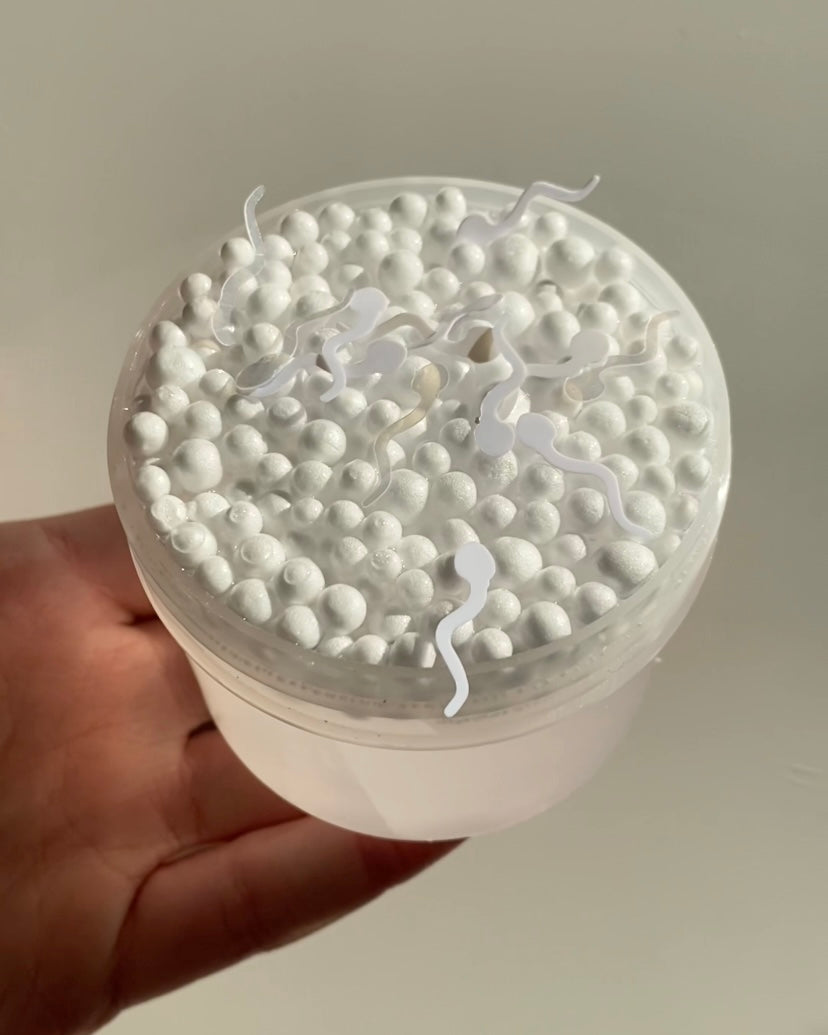 Comes with a back of cute sperm (or tadpole?) glitters to add yourself