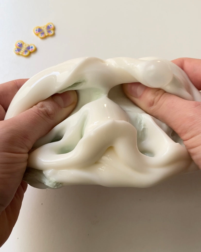 Slime may leave a slight residue on hands after handling