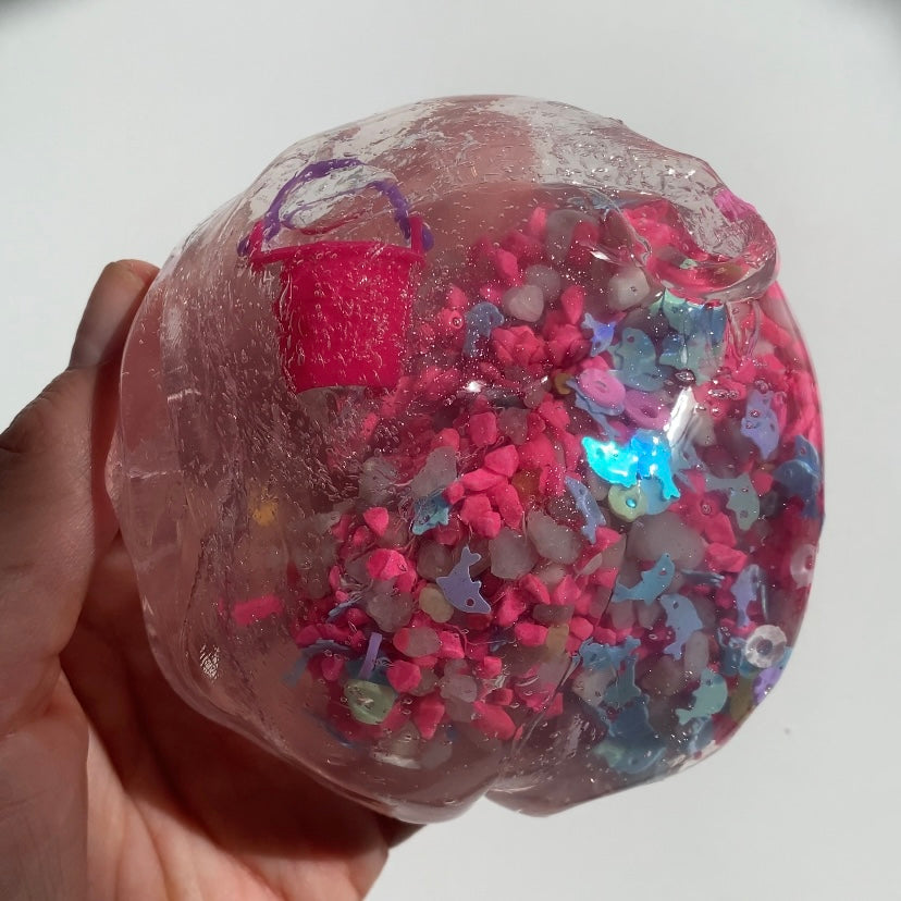 texture: gel x gravel w lots of fun beach fimos & glitters ✨